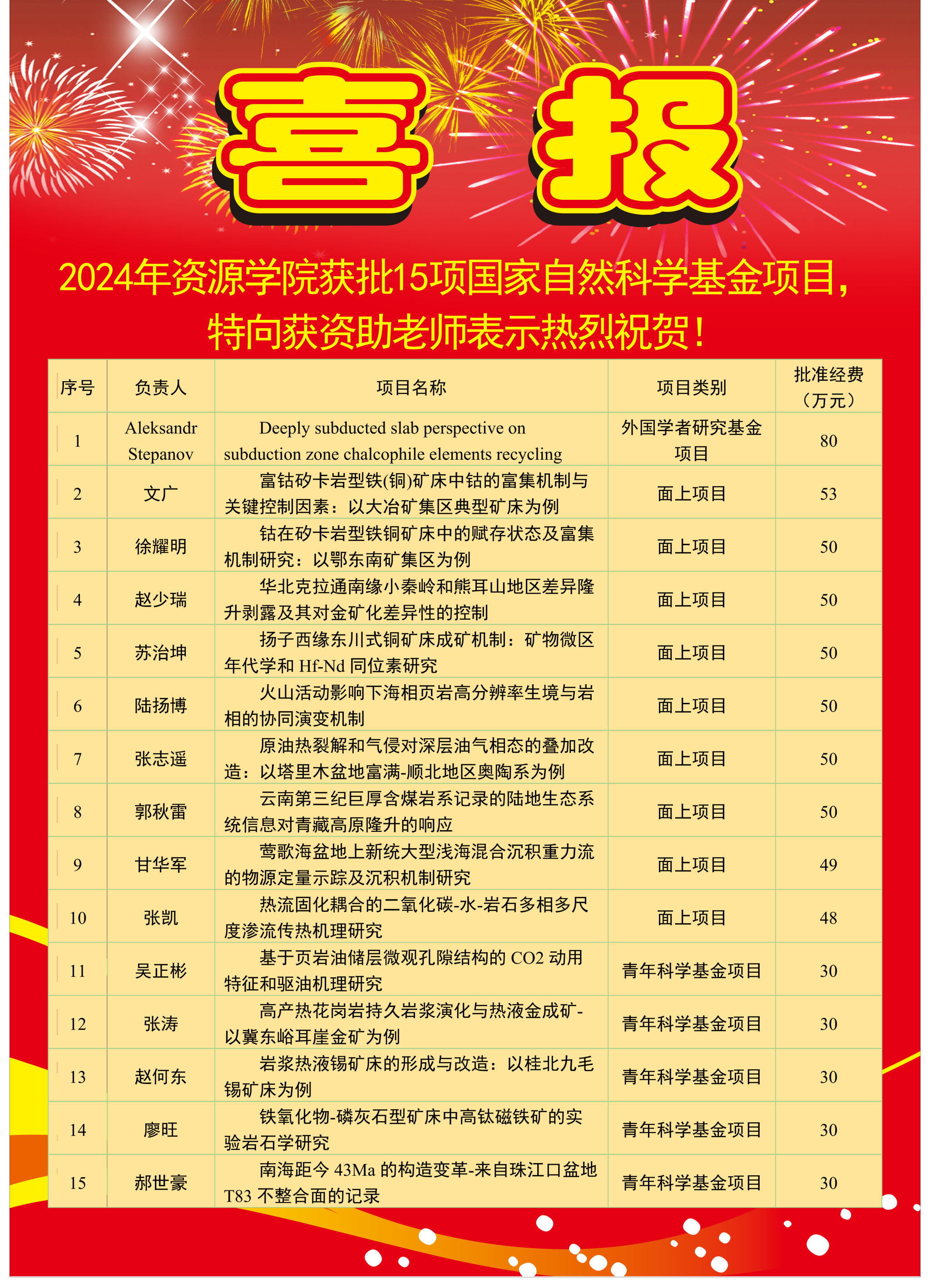 8月23日,国家自然科学基金委员会公布了2024年集中接收期项目评审结果,Beat365中文官方网站共有15个项目获得立项资助。其中,外国学者研究基金项目1项、面上项目9项、青年科学基金项目5项,批准直接经费680万元。