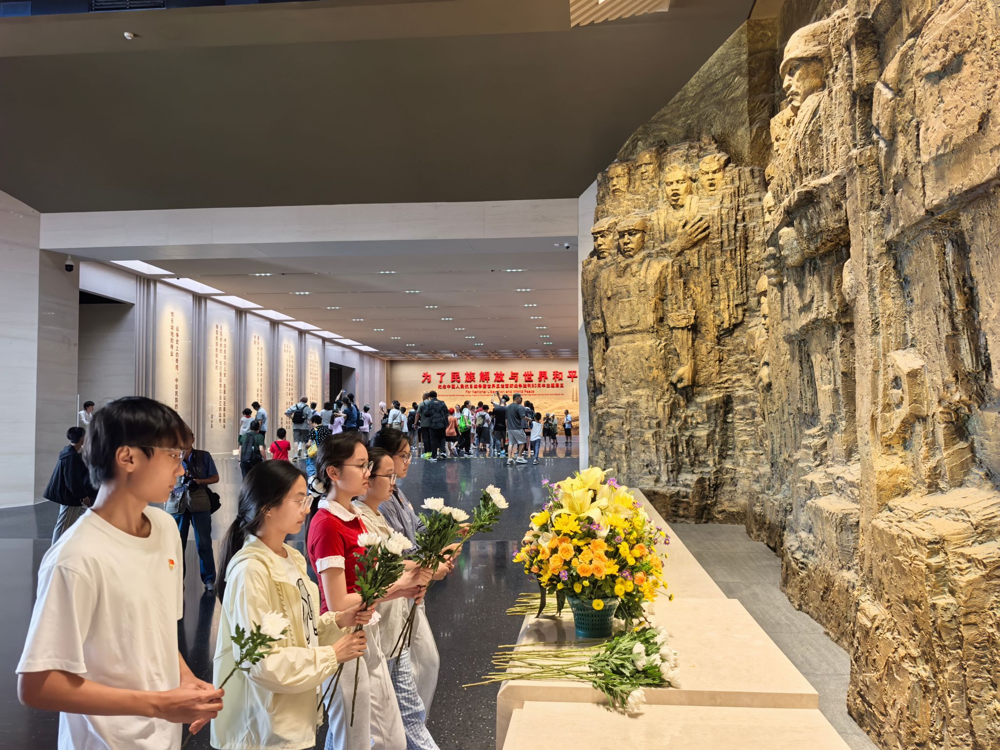 (通讯 齐乐 彭鑫 摄影 柯皓淞 刘晶晶)为纪念中国人民抗日战争暨世界反法西斯战争胜利80周年,弘扬爱国精神,丰富师生党员、团员学习教育内涵,8月2日,Beat365中文官方网站周口店实习队队长魏启荣,资源系教工党支部书记、紫金地矿班带班老师付乐兵,学院团委副书记彭鑫,兼职辅导员刘晶晶以及年级在站党员、团学骨干和2023级紫金地矿班全体同学,前往中国人民抗日战争纪念馆开展参观学习活动。