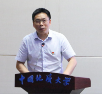 新发展党员代表、博士生范高华同学发言。他回顾了在自己地大十余载的求学与成长经历,报告了自己对学校教育和组织培养的感激之情,分享了新加入中国共产党这个光荣组织的激动心情,表达了自己在攀登科学高峰中追求卓越,在真刀真枪中实干一番事业的信心和决心!