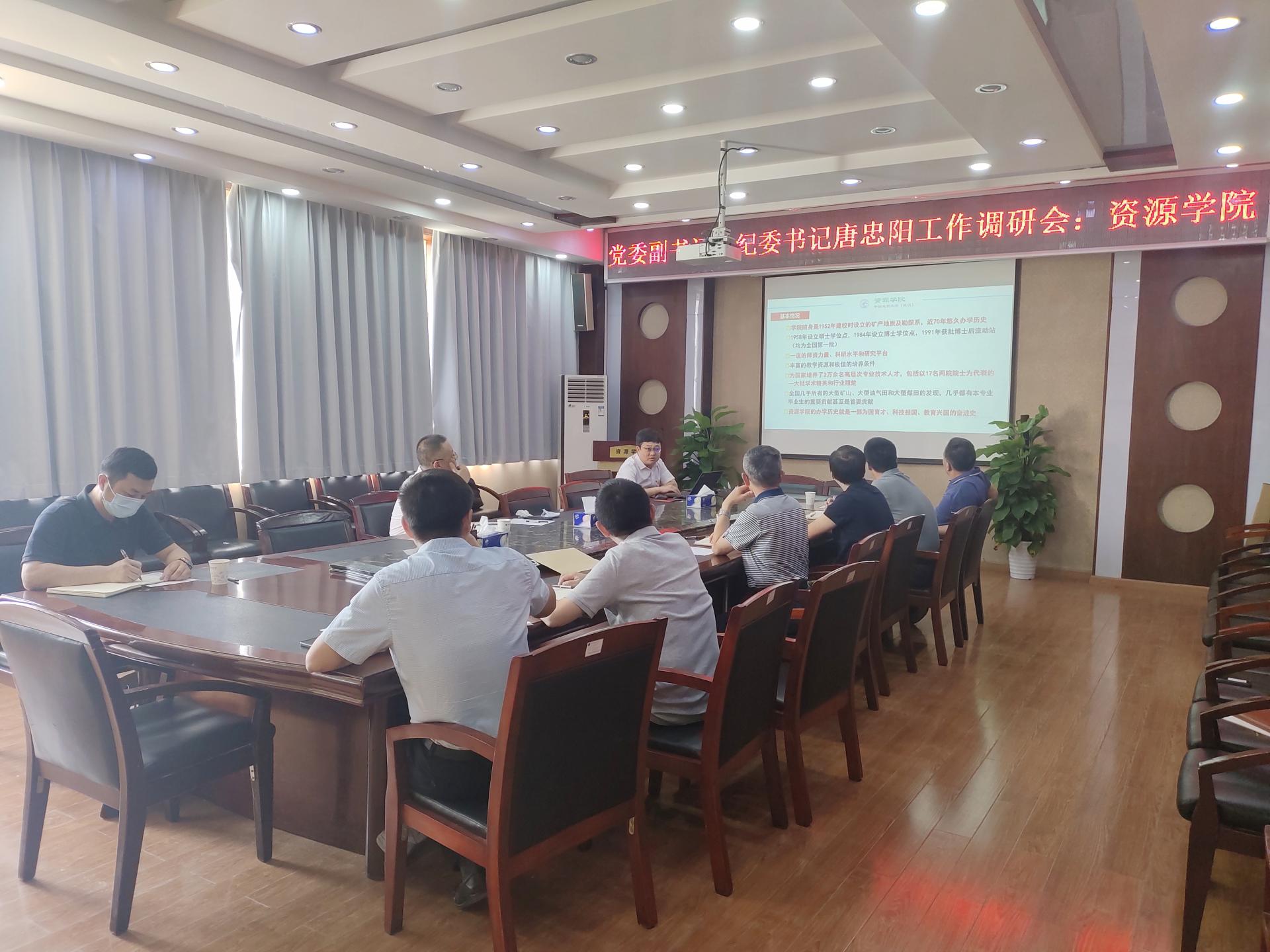 9月29日下午,学校党委副书记、纪委书记唐忠阳到Beat365中文官方网站调研,了解学院事业发展情况,指导学院党建和纪检工作。学院领导班子全体成员参加会议,党委书记高复阳主持会议。