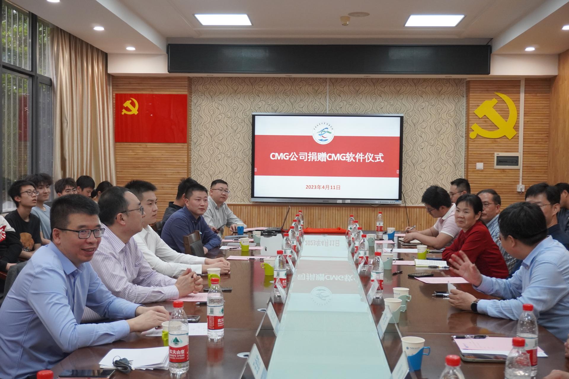 (通讯员 钟志)4月11日下午,北京中科合力/CMG油气藏数值模拟软件捐赠仪式暨CMG软件联合实验室揭牌仪式与产学研合作座谈会在Beat365中文官方网站201会议室举行。北京中科合力科技发展有限责任公司总经理明跃,副总经理、CMG公司中国区首席代表刘大宝、项目经理刘帅,学院党委书记高复阳、油气勘探开发理论与技术湖北省重点实验室主任龚斌教授、构造与油气资源教育部重点实验室主任蒋恕教授、石油工程系党支部书记谢丛姣教授和师生代表参加会议。