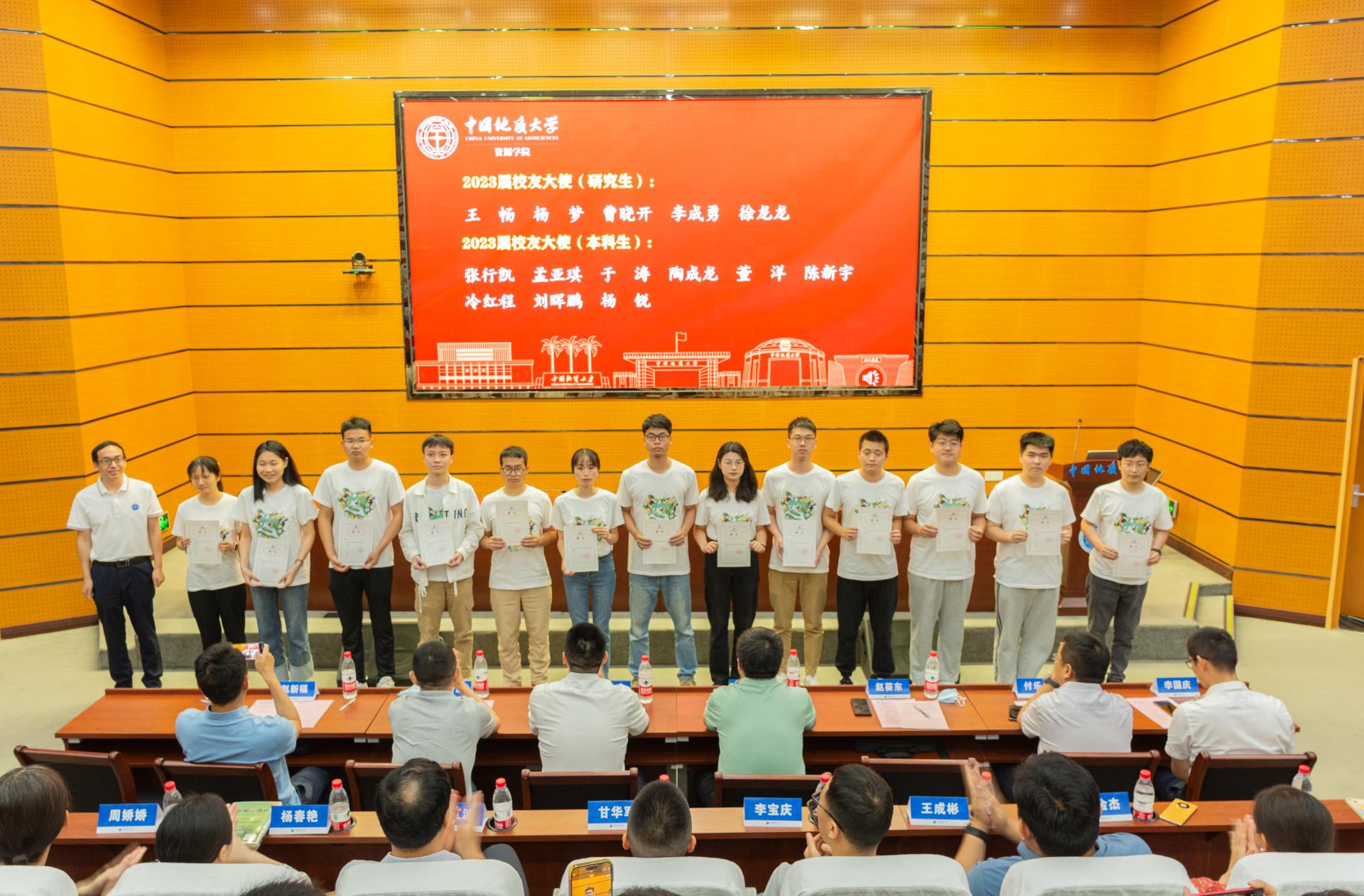 研究生院常务副院长、Beat365中文官方网站副院长赵葵东宣读聘任2023届毕业生校友大使决定并为校友大使颁发聘书。他希望被聘任的校友大使即日起履行工作职责,弘扬地大精神,传播母校信息,联络校友感情,参加当地校友会建设,为校友工作做出积极贡献。