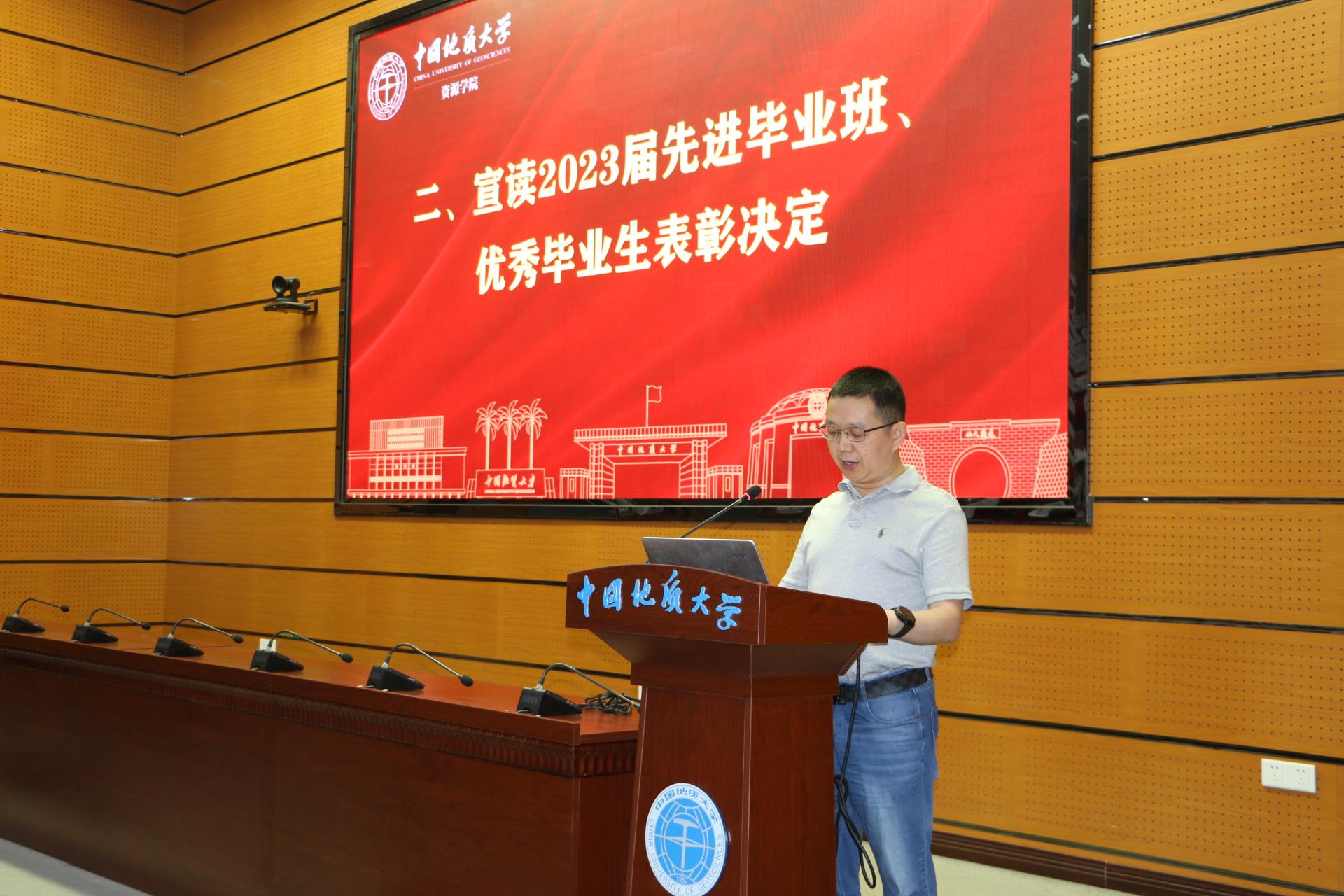 院长严德天以《从资源出发,向祖国报到》为题深情寄语毕业生。他说,2023届毕业生是坚强的一届!疫情之下依然坚持网课学习,增长本领;完成了第一次地质初恋—武汉周边实习,更是领略了地大人阔别许久的周口店的风采,在太平山下演绎着“罗盘指引人生路、铁锤碰撞绚丽花”的地质华章;同学们也共同见证了新中国成立70周年、建党100周年等党和国家的大事,共同奏响了“清澈的爱,只为中国”的时代强音!