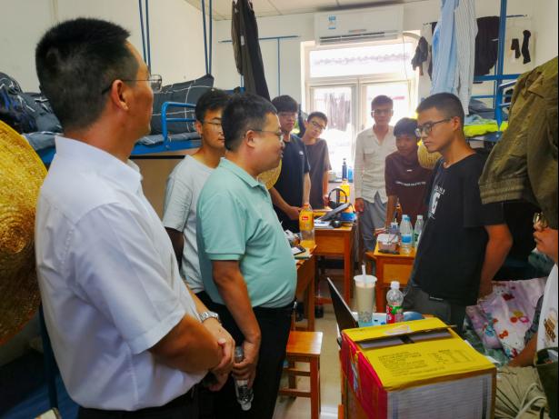 期间,高复阳、严德天看望了因暴雨受困晚到站学生,了解他们的受困经历,为他们坚韧的意志、向学的态度和主动参与志愿服务工作点赞,祝愿他们在实习中取得佳绩。