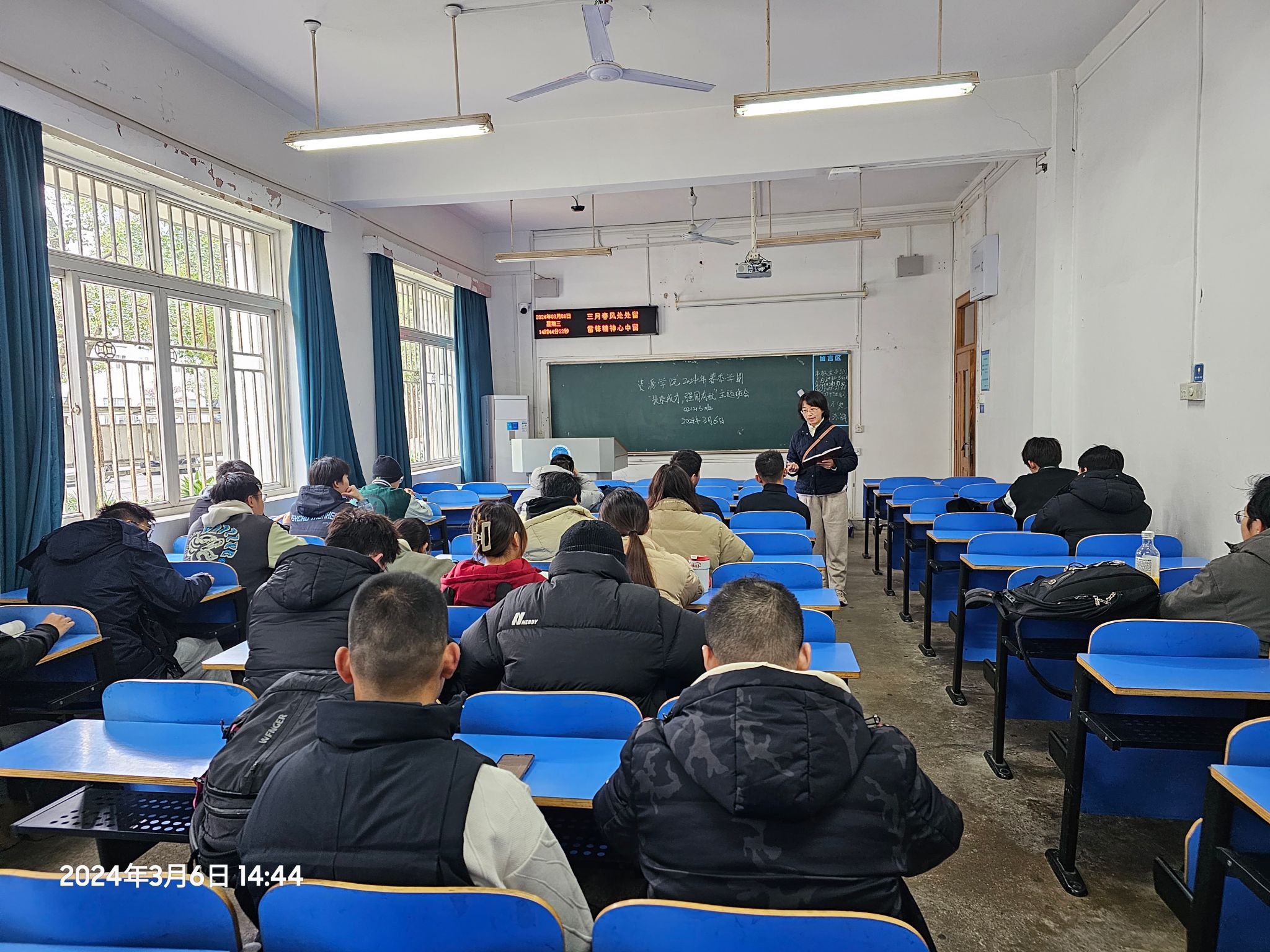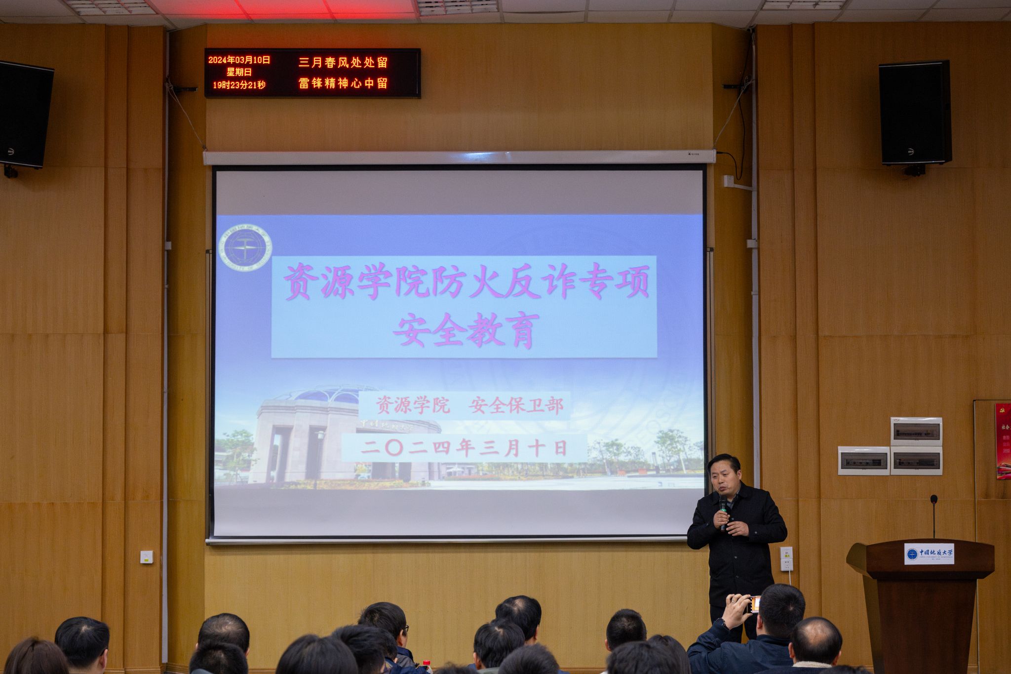为增强学生安全意识,学院开展2024年春季学期安全教育专题活动。学院年级大会邀请安全保卫部治安科彭红进、魏景明两位老师,结合典型校园火灾、诈骗案例,向同学们阐述了掌握防火防骗知识的必要性。