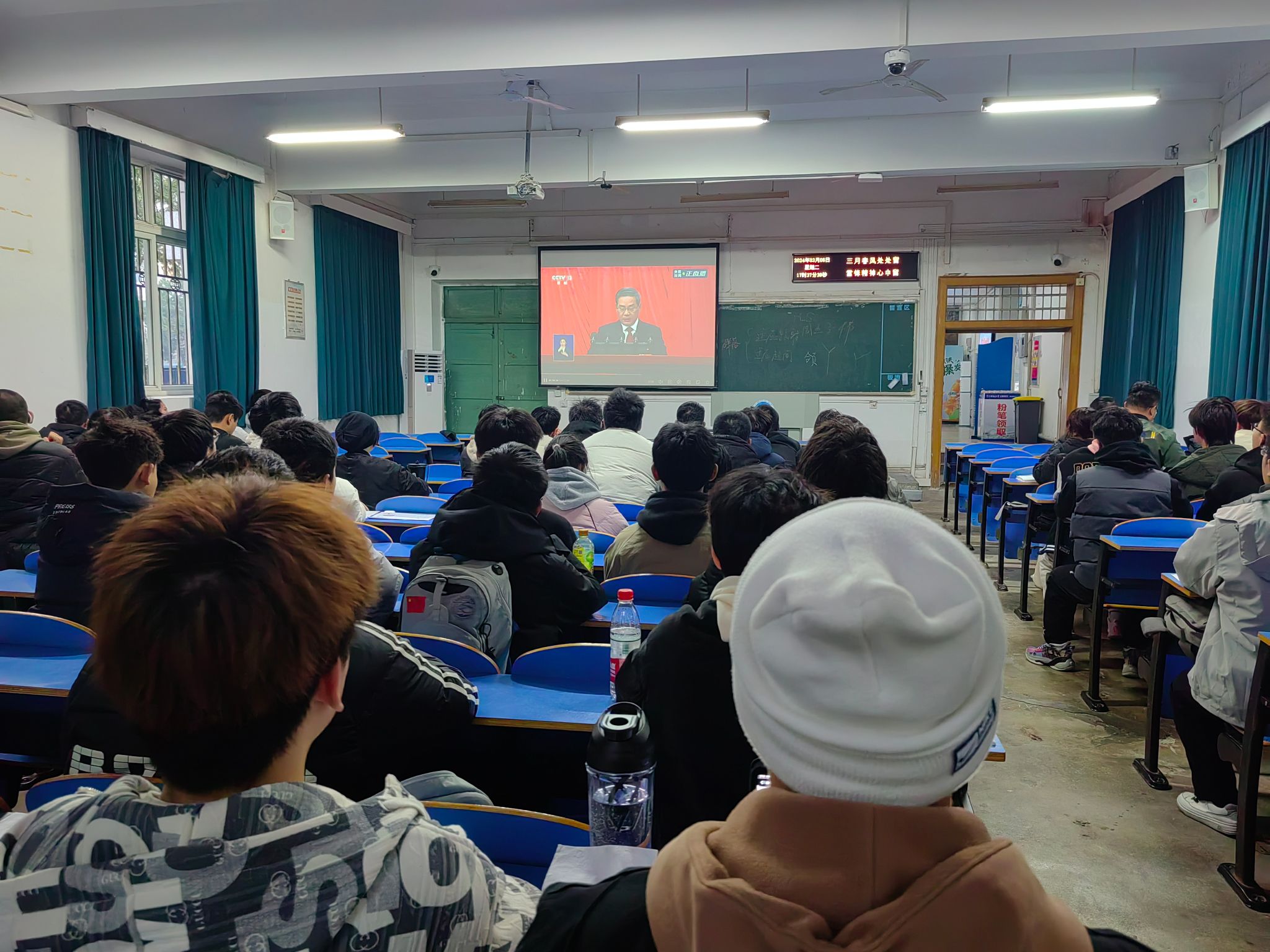 2月26日晚,Beat365中文官方网站组织全体学生收看由人民网+推出的“为国攀登 ”思政大课。通过集中学习与个人自学相结合的方式同上一堂思政大课,热议“扎根中国、胸怀天下,勇攀高峰、追求卓越 ”的攀登精神,激励学生在学思践悟中坚定理想信念,在奋发有为中践行攀登精神。组织、引导学生第一时间观看两会直播,关注两会内容,学习两会知识。