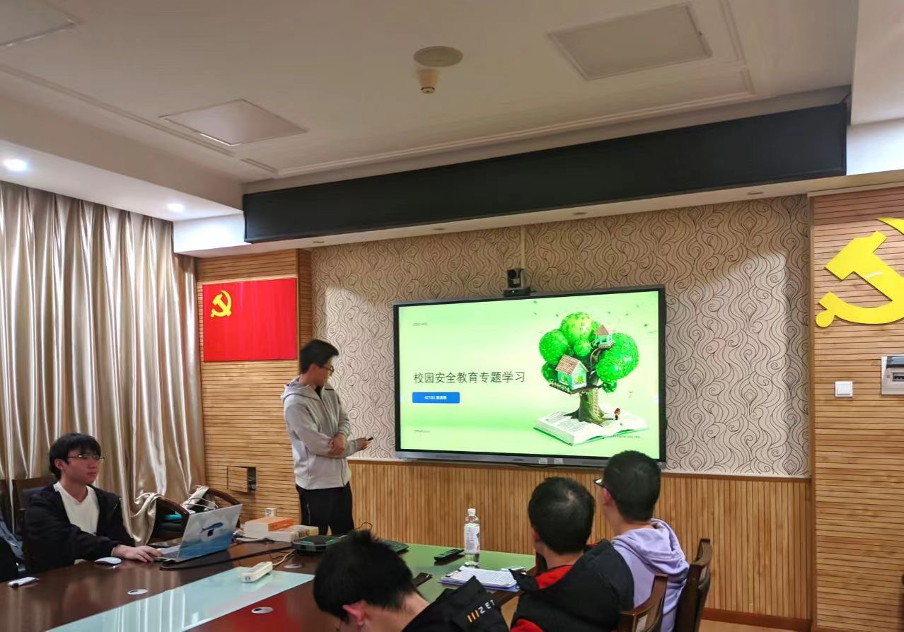 班级安全与生活委员通过主题分享、互动课堂等形式在班级进行校园安全教育宣讲,内容包括交通安全、消防安全、人身安全、财产安全等方面,借助身边的案例重点提醒防骗反诈和防火安全,提醒班级同学做好宿舍安全自查,增强校园安全基本常识,熟悉常用消防设施使用方法。