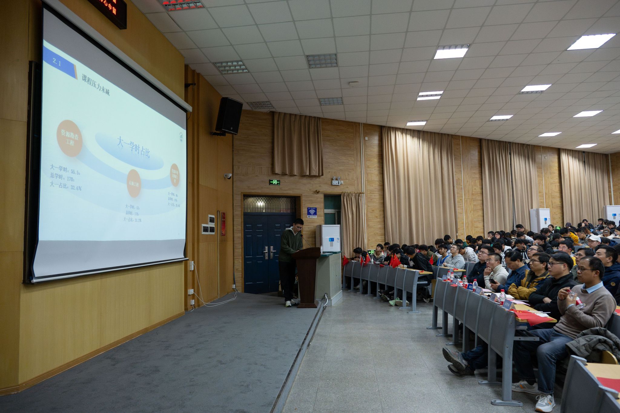 邹世博从学情分析、形势挑战、应对措施三个方面展开,通过对平均分、平均绩点、优秀率、不及格人数等数据分析,在梳理上个学期的学情基础上对本学期学习任务提出针对性建议。