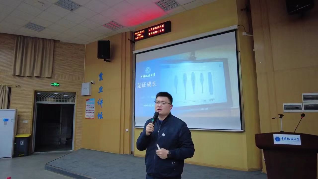 张鹏飞老师作为班主任代表发言。他讲道,“希望同学们在面临平时的艰难困苦时,能够培养积极的生活心态,能够寻找驱使自己前进的动力,学会在逆境中强力成长。希望大家在面临挑战和未知时,能够结识了志同道合的伙伴,与他们携手而行,相互鼓励,共克难关。”他鼓励同学们要涵养家国情怀、勤于学习、苦练本领,做新时代的奉献者。
