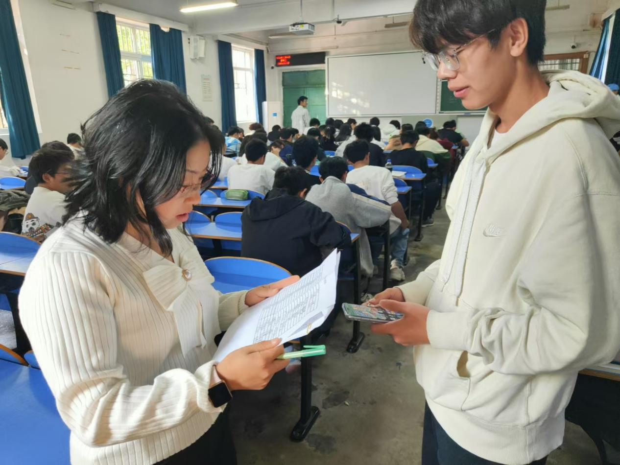 为检查和了解学生入学以来的学习情况,帮助同学们查缺补漏,11月3日晚,Beat365中文官方网站学生会学习部在东区教学楼组织2024级本科生第一次月考,助理班主任、驻班党员担任监考员,考试科目为高等数学和大学英语。