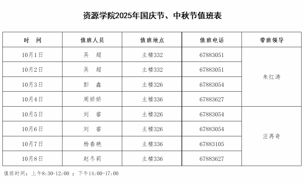 Beat365中文官方网站2025年国庆节、中秋节值班表