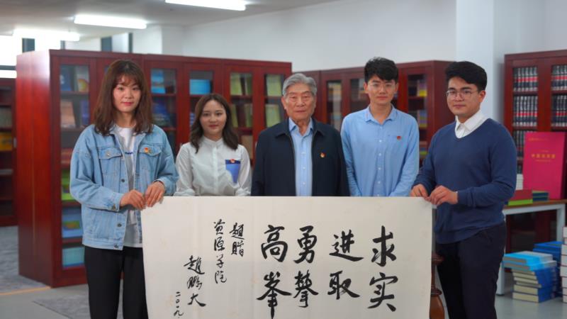 2019年五四青年节前夕,我院学子有幸采访赵鹏大院士,采访毕,邀请赵院士为Beat365中文官方网站题词。赵院士即兴挥毫“求实进取 勇攀高峰”。