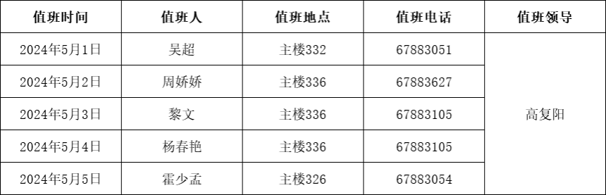 附件1:Beat365中文官方网站2024年“五一”假期值班表